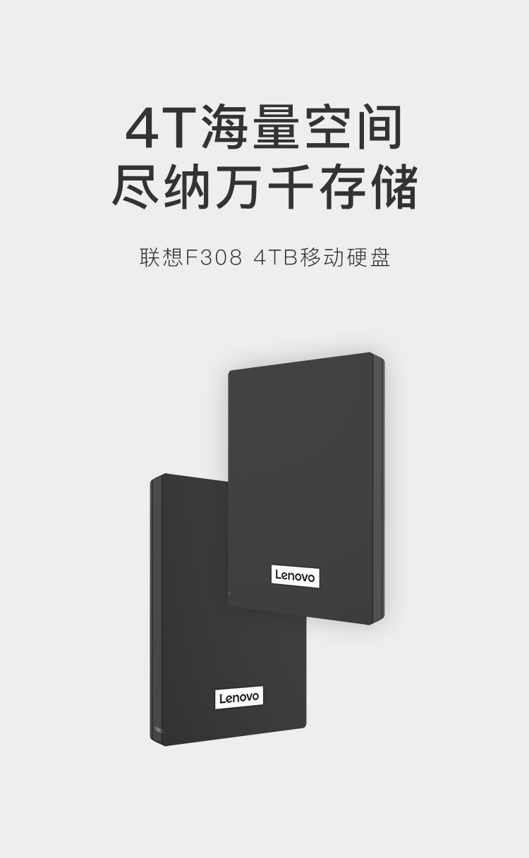 联想(Lenovo) F308 4TB USB3.0 移动硬盘 F308 2.5英寸 黑色 高速传输个 个人云外接硬盘