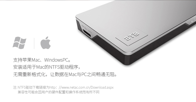 朗科(Netac) K338/2TB USB3.0 移动硬盘 高端合金加密版 2.5英寸 皓月银
