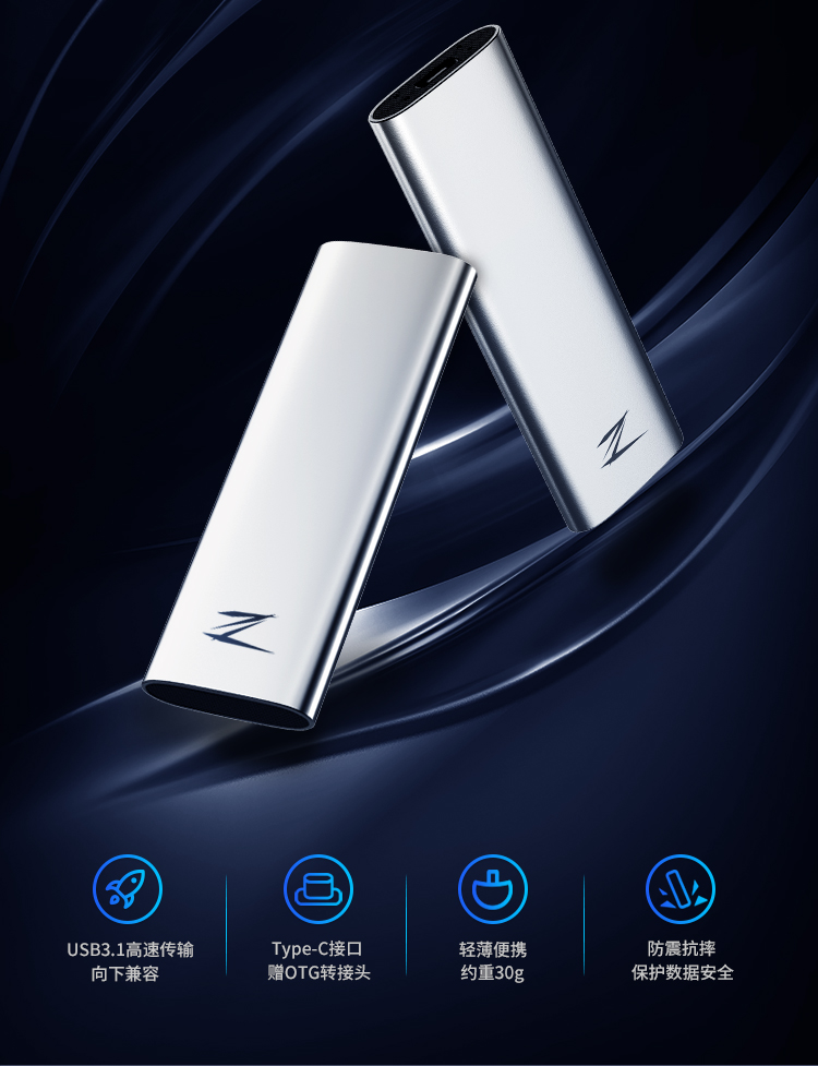 朗科(Netac) Z Slim/512GB 固态硬盘Type-c USB3.1 移动硬盘(PSSD)防震耐用 高速传输