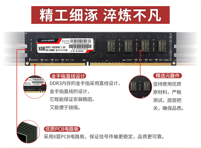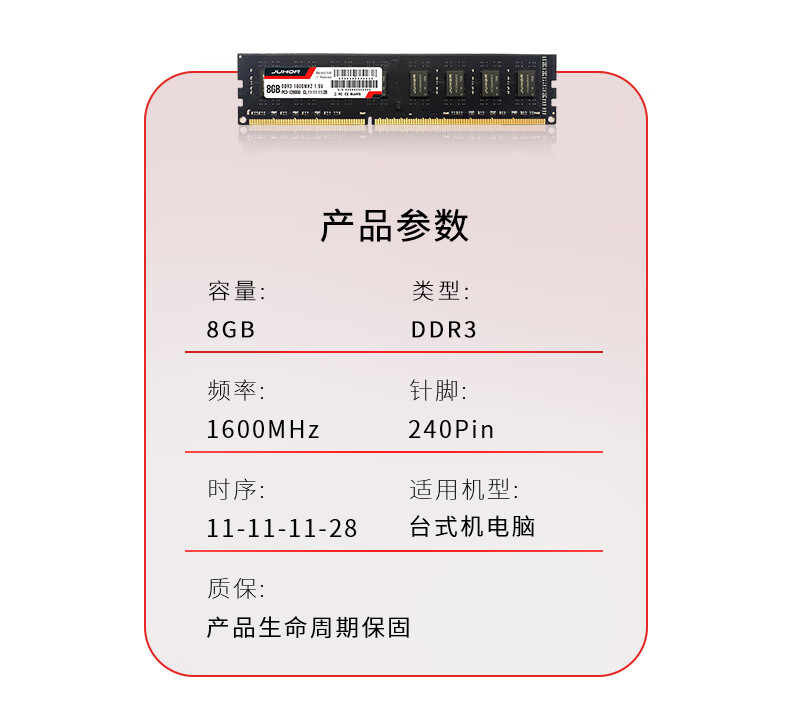玖合(JUHOR) 8GB DDR3 1600 台式机内存条