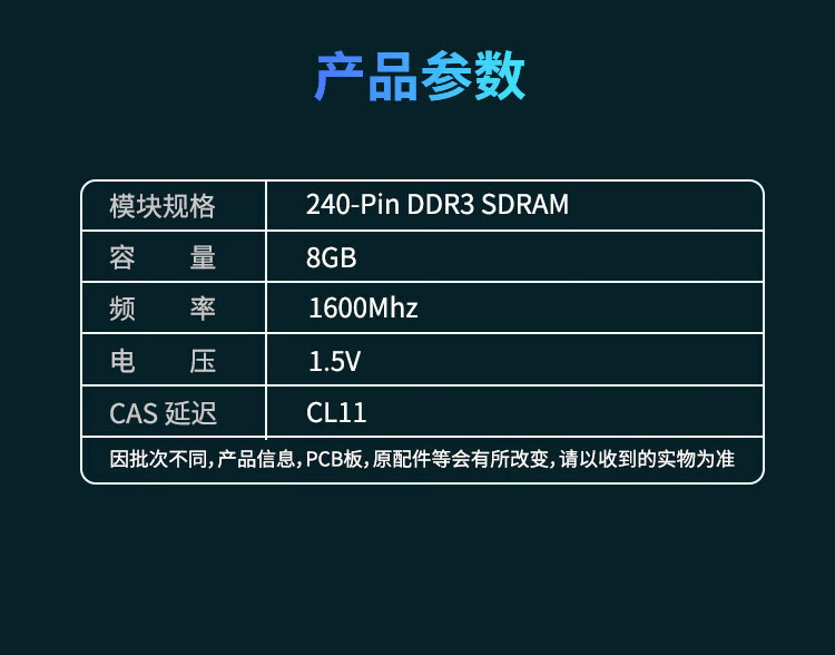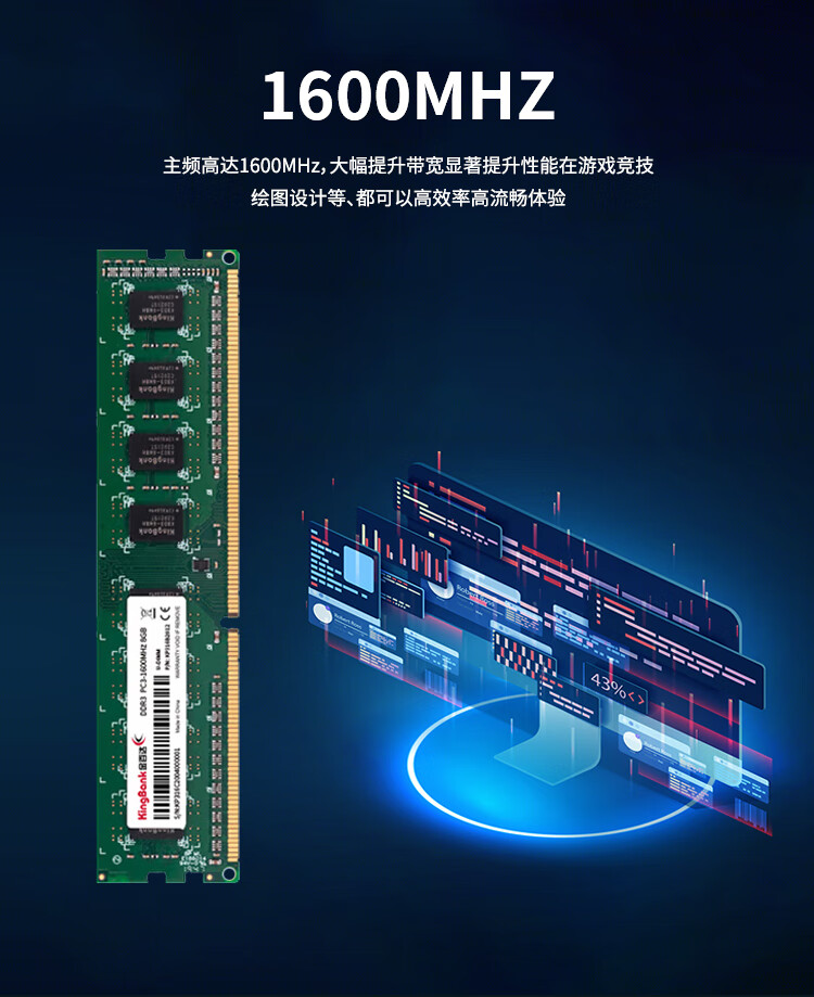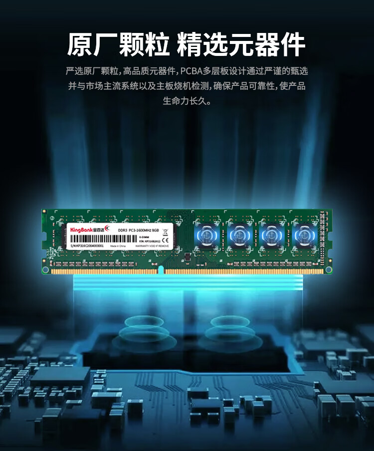 金百达(KINGBANK)8GB DDR3 1600 台式机内存条