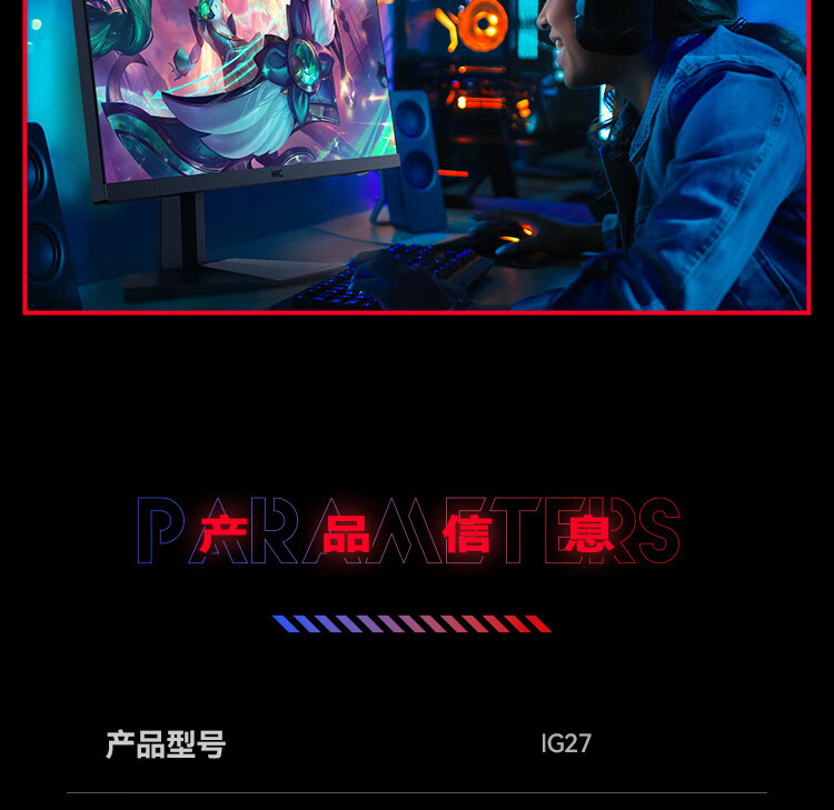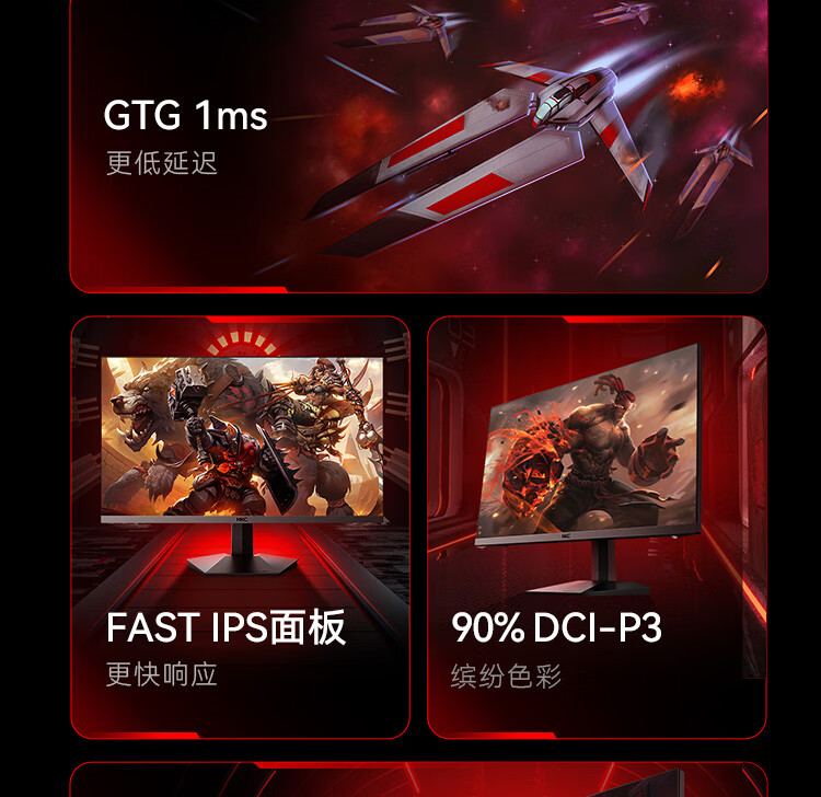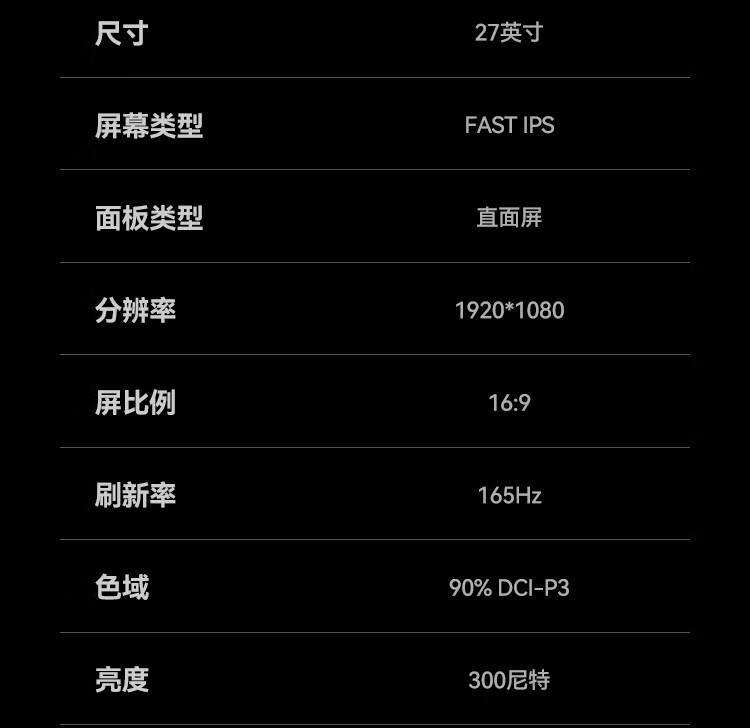 HKC 27英寸 FastIPS小金刚165Hz高刷 GTG 1ms 高清广色域